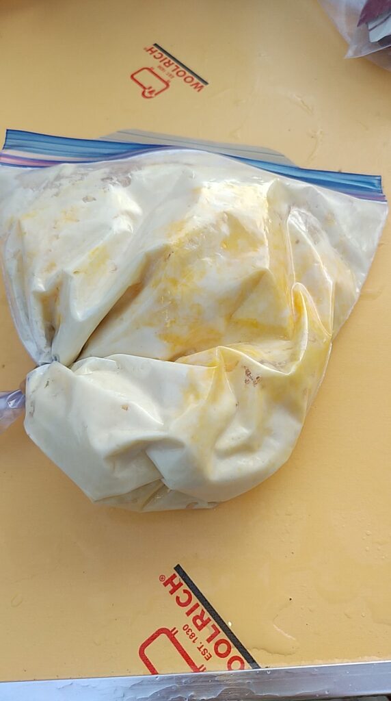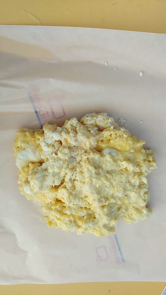 2. 1と卵と牛乳を“ジップロック”に入れモミモミ。生地をまとめます。