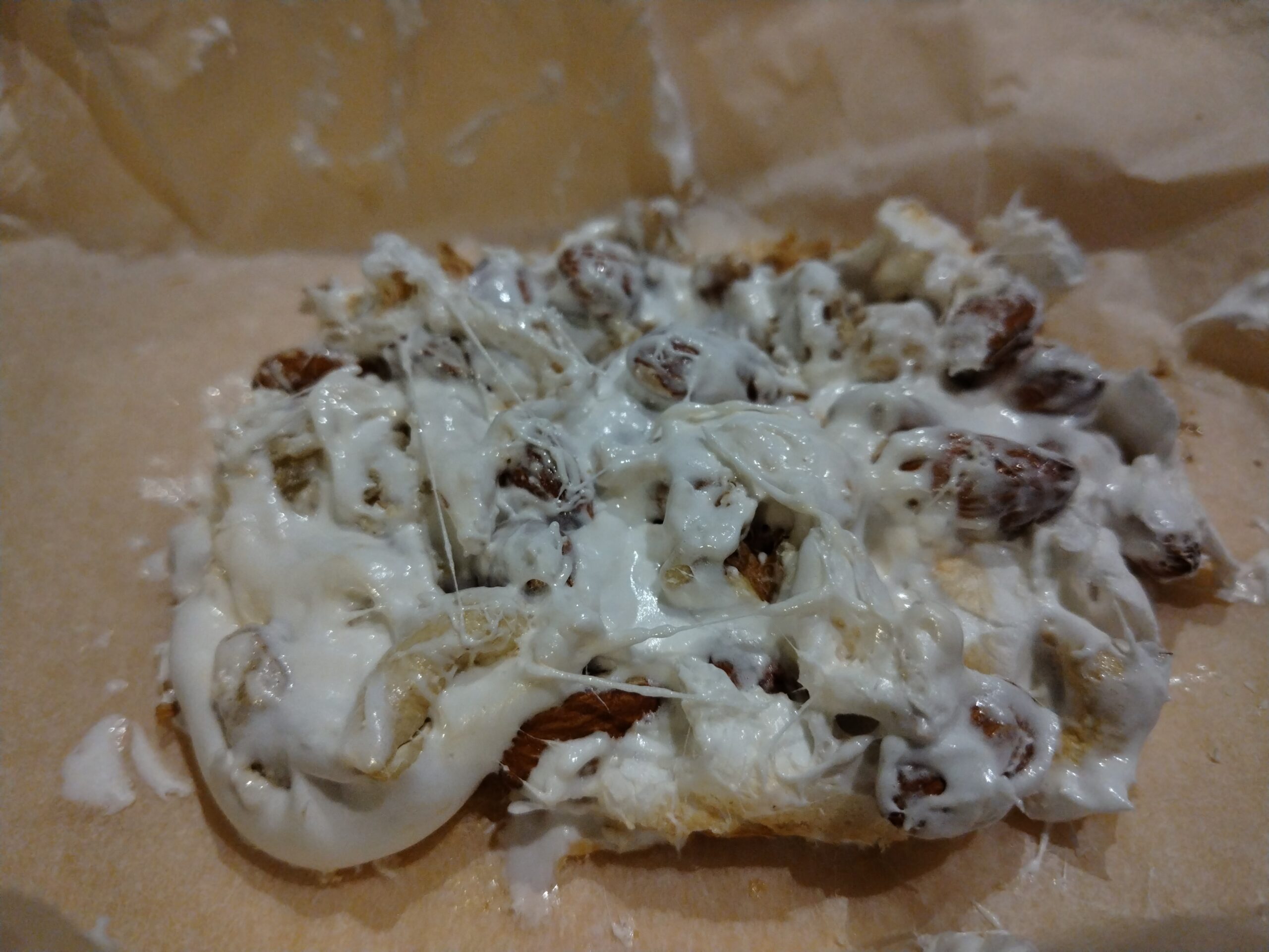 3. マシュマロを加え、溶けてナッツと絡んでくるまでじっくり混ぜます。