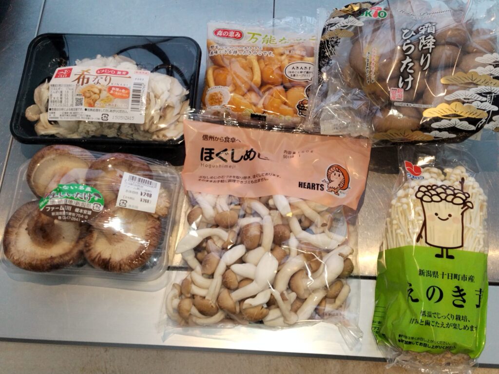 - きのこ(しめじ・マイタケ・しいたけなど) … 合わせて1〜2パック