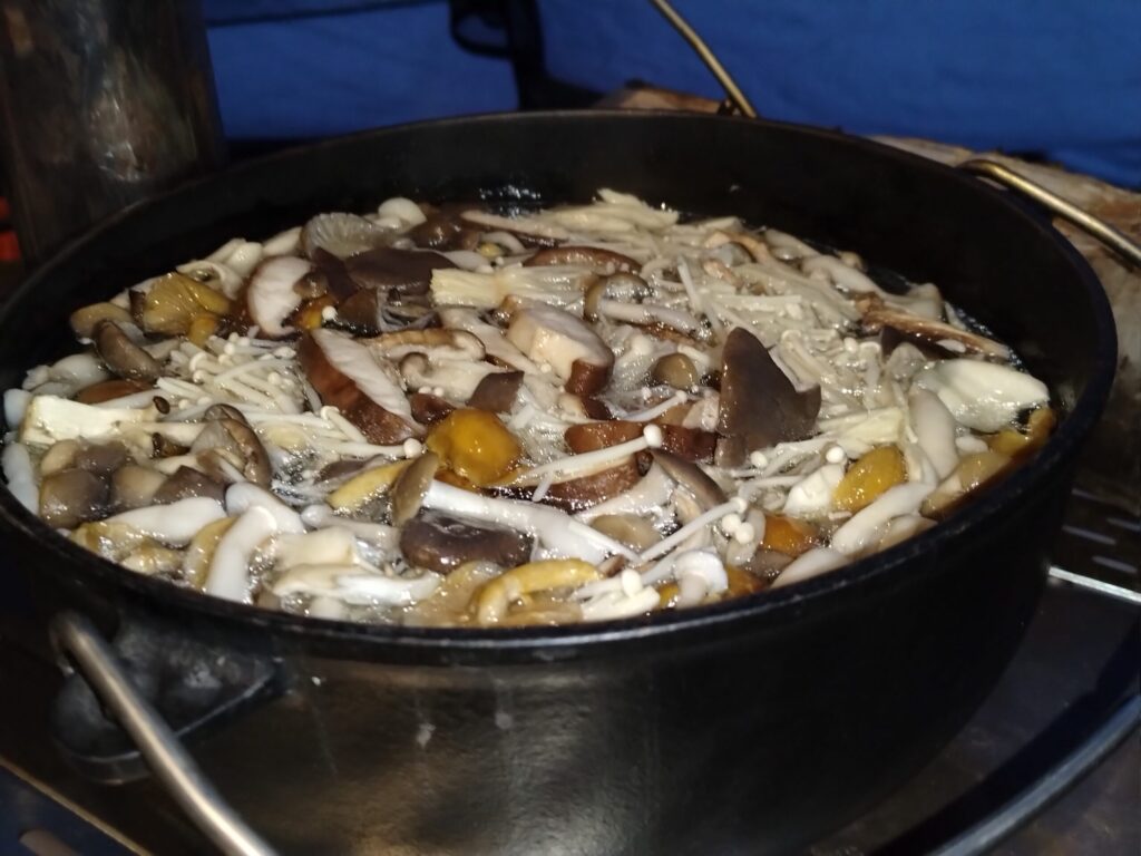こんにちは。焚き火の揺らめきと、ちょっと冷たい空気が心地よいキャンプの夜。そんな時間に食べたくなるのが、この鶏肉ときのこ鍋です。きのこ特有の香りと鶏肉の旨みがじっくり煮込まれて、「ああ、キャンプ来てよかったな」としみじみ思える優しい味わい。