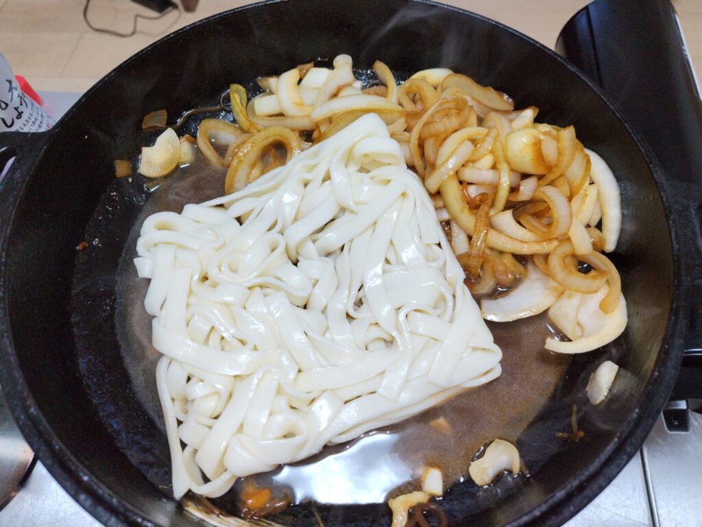 - きしめんで〆:満喫したら、残ったすき焼きの出汁にきしめんを入れて煮込みます。麺が出汁を吸って、〆にぴったりです。
