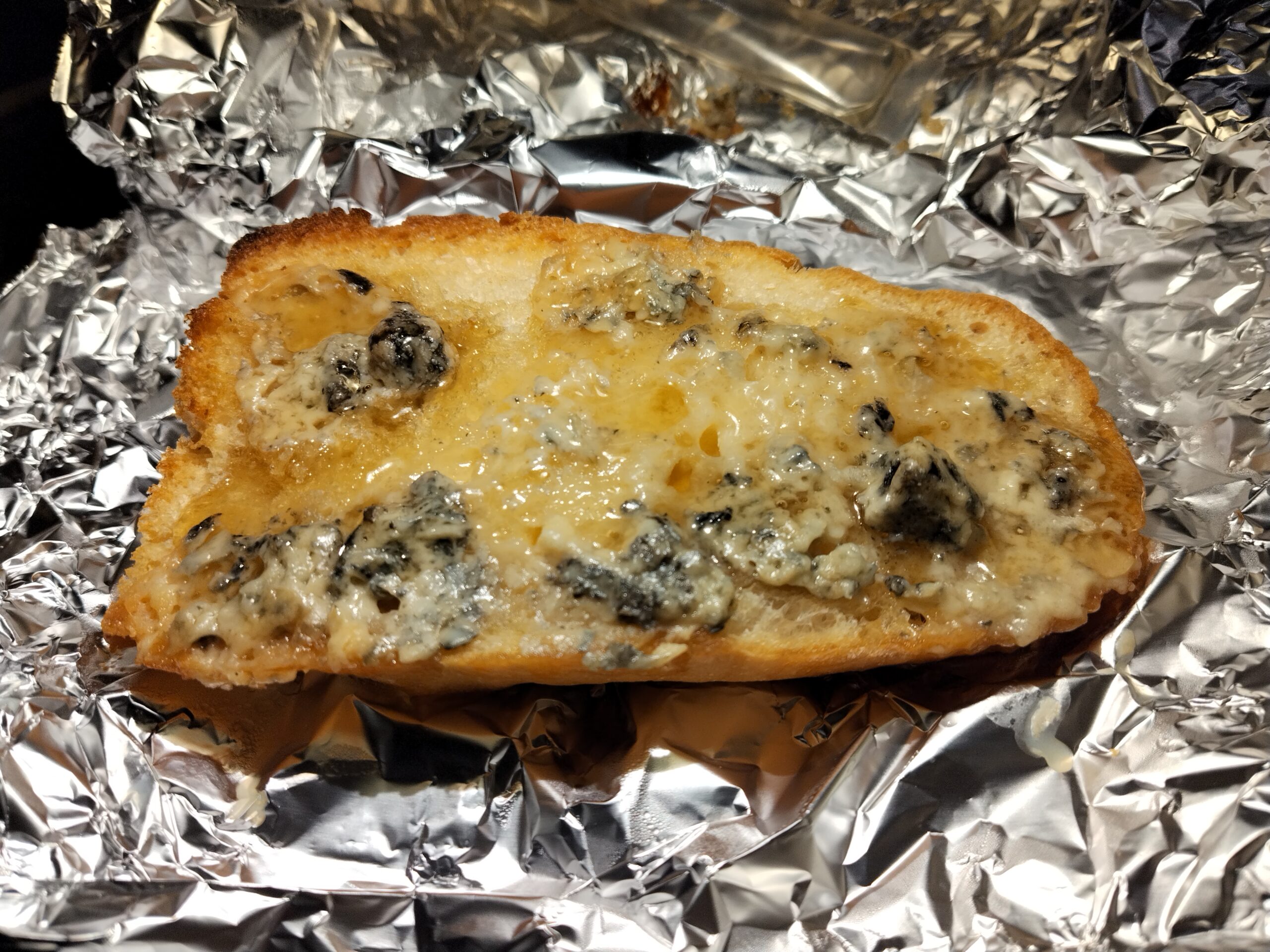 青カビチーズの濃厚な旨味と、ハチミツの甘さが絶妙にマッチ。シンプルなのに驚くほど満足感のあるキャンプ飯レシピです。