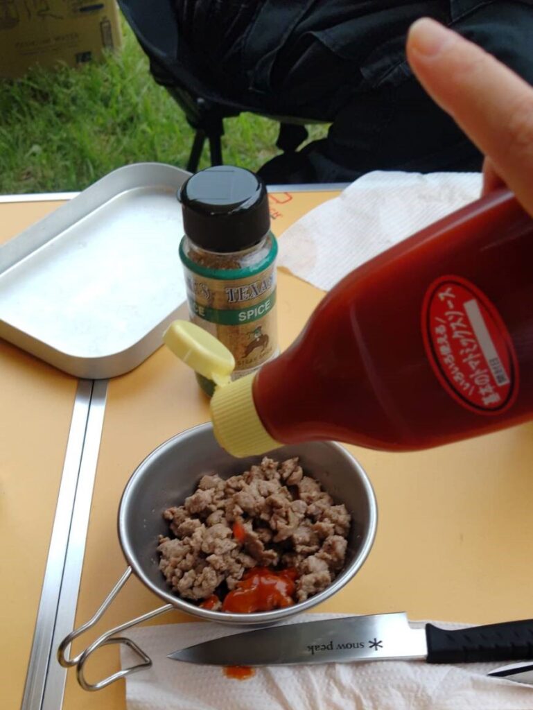 ※肉から油がでるため。 - 火が通ったらスパイスで味付け。※かけ過ぎ注意!