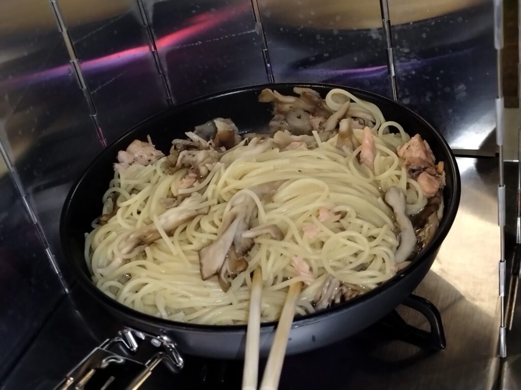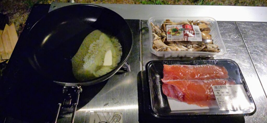 こんにちは!今回は、秋のキャンプにぴったりな一皿、「鮭ときのこの和風パスタ」をご紹介します。