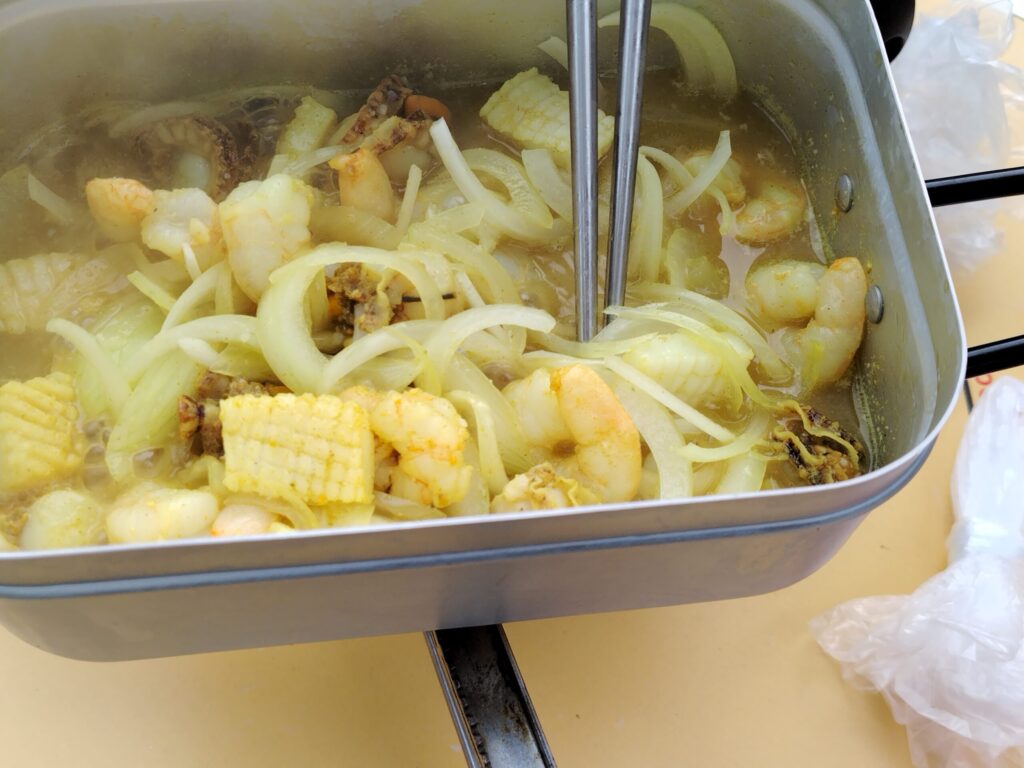「シーフードカレー」は、下ごしらえ少なめ・手軽・美味しいの三拍子そろったキャンプ飯にもってこいのレシピ。