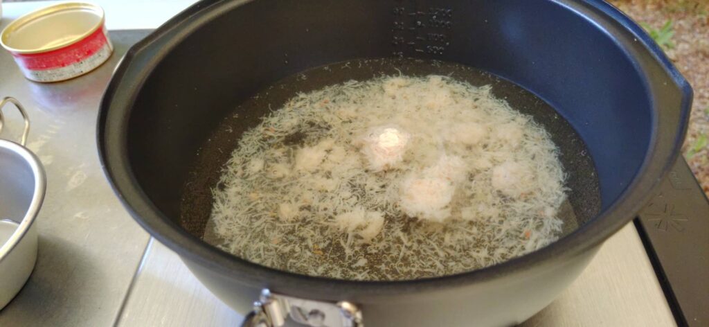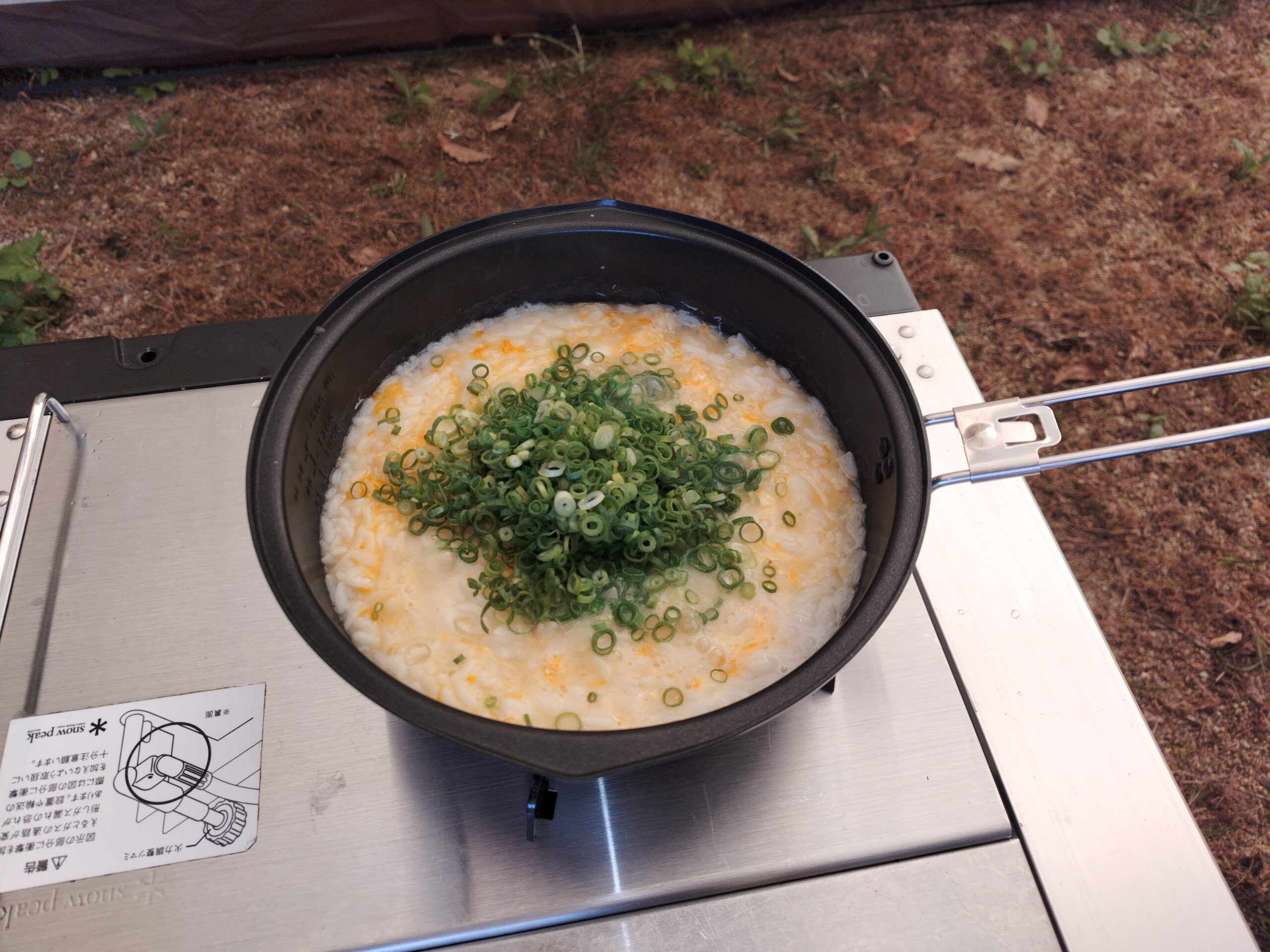 「かに雑炊」は、キャンプでも簡単に作れる贅沢な一品です。