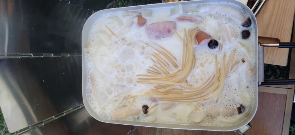 こんにちは!今回は、準備も手軽で、手を汚さずにサッと作れるアウトドアごはん、しめじとソーセージのスープパスタをご紹介します。 鍋ひとつで完結できるので、荷物を少なくしたい初心者キャンパーさんにもおすすめ。 焚き火やバーナーのそばで、湯気とともにゆるりと味わってみませんか?