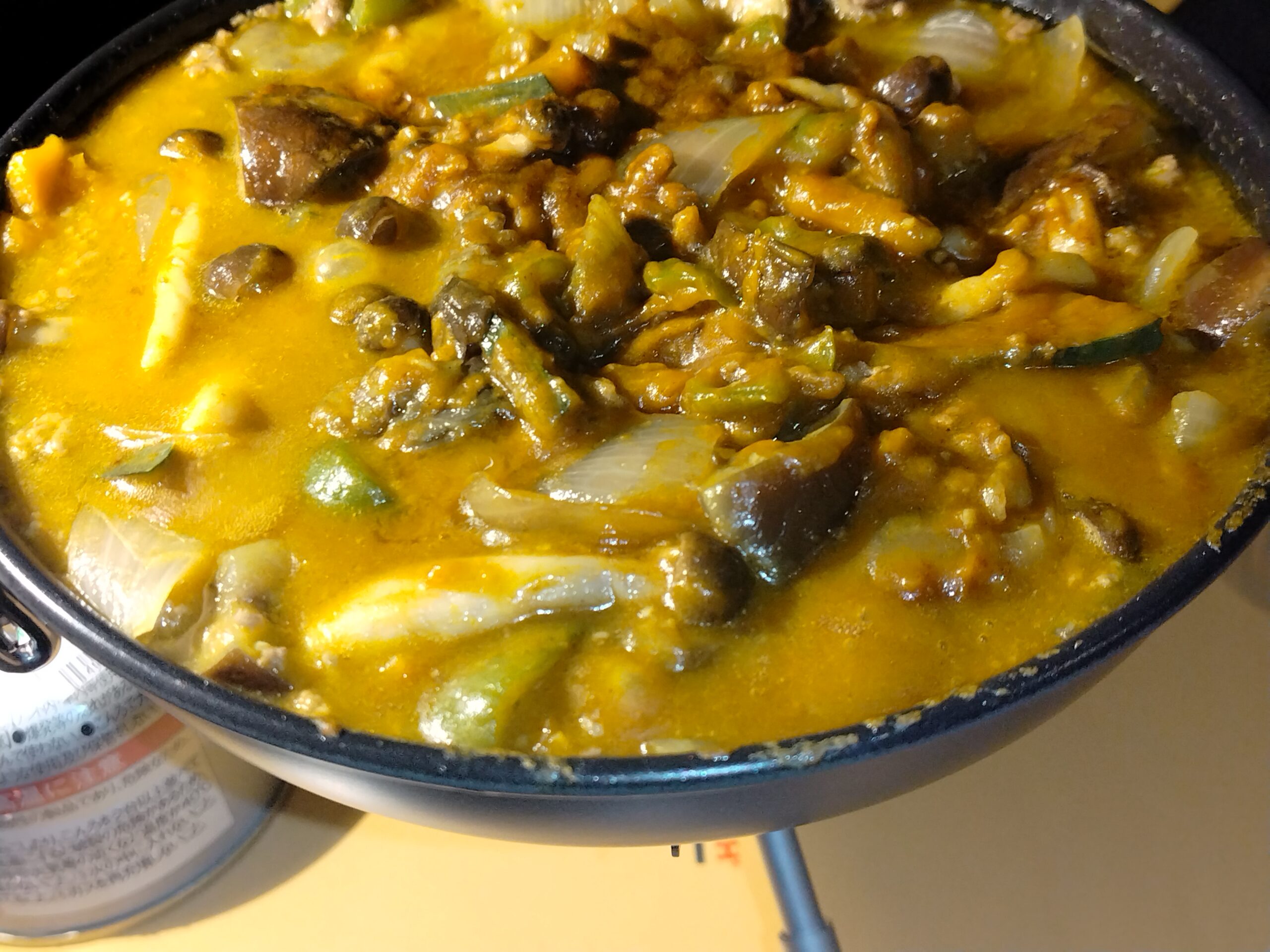 ちなみに鍋でご飯を炊いたのでカレーはフライパンで作りました。